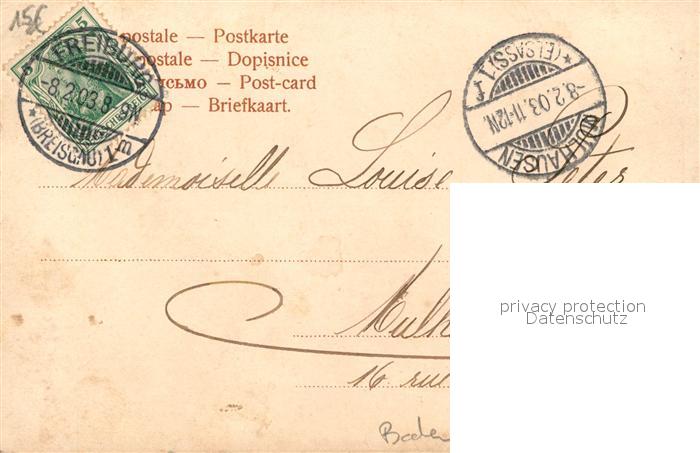 43510577 alte Postkarte Freiburg Breisgau Kaiserstrasse mit Siegesdenkmal Blick zum Muenster postalisch gelaufen Erhaltung siehe scans [FriedD77] KatCode: 11110008311000