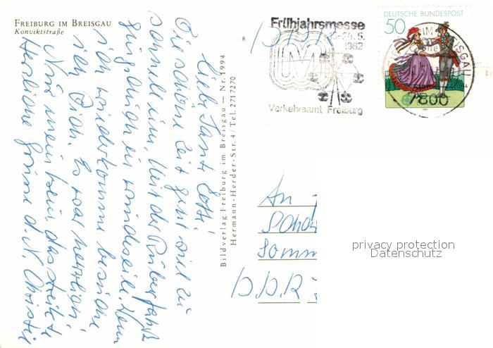 72856426 Freiburg Breisgau Konviktstrasse postalisch nicht gelaufen Erhaltung siehe scans [WerneD78] KatCode: 11110008311000