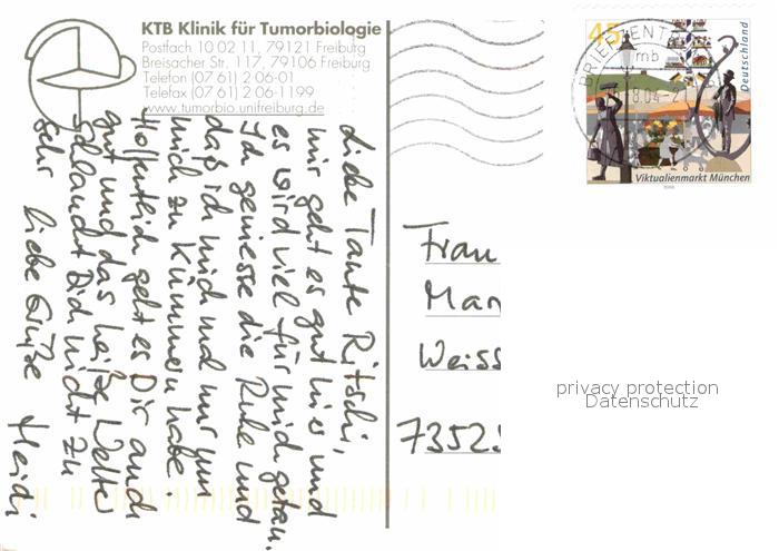 72917025 alte Postkarte Freiburg Breisgau KTB Klinik postalisch gelaufen Erhaltung siehe scans [NatalD47] KatCode: 11110008311000