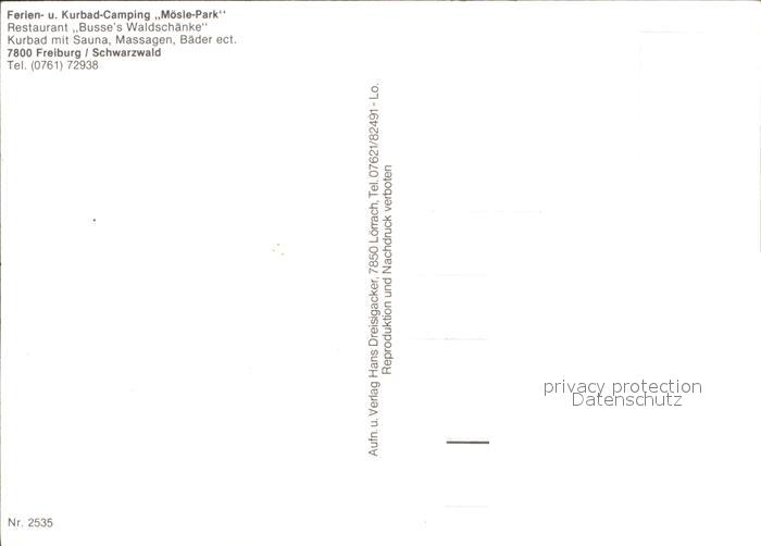 72035708 Freiburg Breisgau Kurcaming Moesle Park Miet Caravan Sauna Garten Restaurant Busses Waldschaenke postalisch nicht gelaufen Erhaltung siehe scans KatCode: 11110008311000