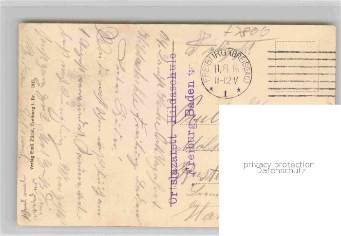 42808171 alte Postkarte Freiburg Breisgau Lazarett Hildaschule postalisch gelaufen Feldpost Erhaltung siehe scans [AndreD76] KatCode: 11110008311000
