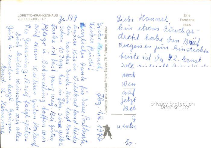 72527648 Freiburg Breisgau Loretto Krankenhaus postalisch nicht gelaufen Erhaltung siehe scans KatCode: 11110008311000