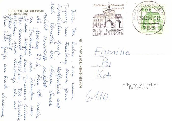 72776527 alte Postkarte Freiburg Breisgau Luftaufnahme postalisch gelaufen Erhaltung siehe scans [KathaD81] KatCode: 11110008311000