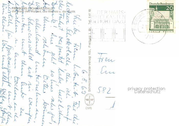 72821481 alte Postkarte Freiburg Breisgau Martinstor Schwabentor Muenster postalisch gelaufen Erhaltung siehe scans [AndreD76] KatCode: 11110008311000