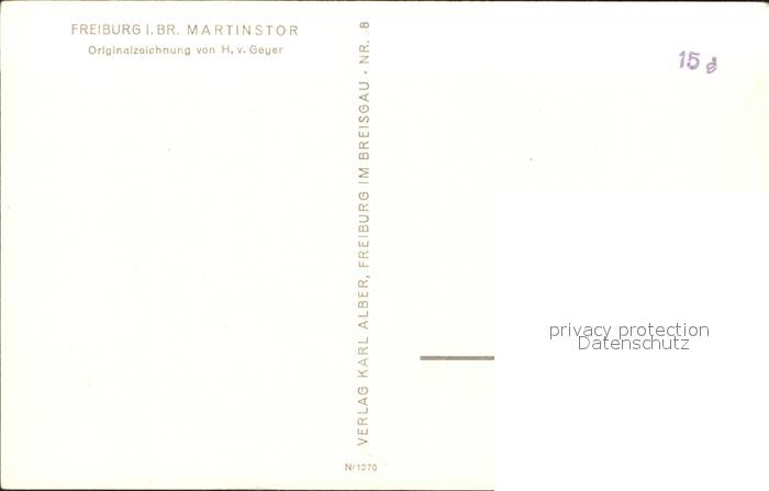 71911172 Freiburg Breisgau Martinstor Zeichnung postalisch nicht gelaufen Erhaltung siehe scans KatCode: 11110008311000
