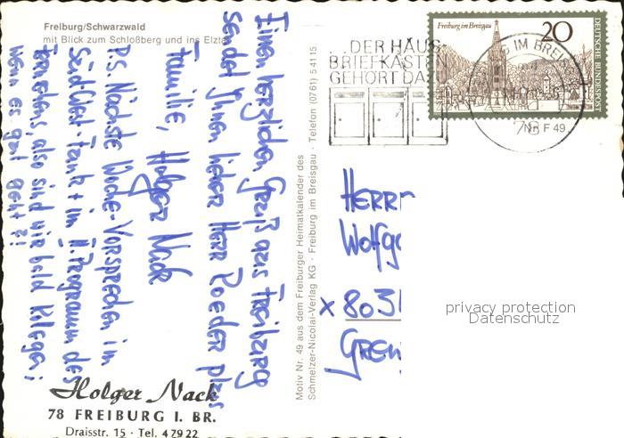 72406831 alte Postkarte Freiburg Breisgau mit Blick zum Schlossberg und ins Elztal postalisch gelaufen Erhaltung siehe scans KatCode: 11110008311000
