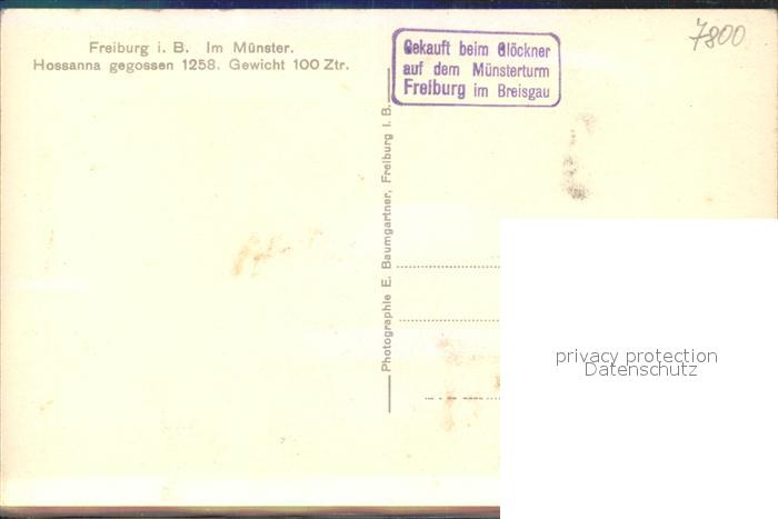 41976868 Freiburg Breisgau Muenster Hossanna Glocke gegossen 1258 postalisch nicht gelaufen Erhaltung siehe scans KatCode: 11110008311000