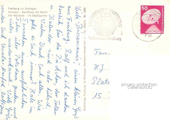 72694660 alte Postkarte Freiburg Breisgau Muenster Kaufhaus Markt Waldsee Stadtgarten postalisch gelaufen Erhaltung siehe scans [FriedD77] KatCode: 11110008311000