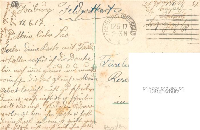 43491569 alte Postkarte Freiburg Breisgau Muenster Rathaus Kaufhaus Panorama postalisch gelaufen Feldpostkarte Erhaltung siehe scans [KathaD81] KatCode: 11110008311000