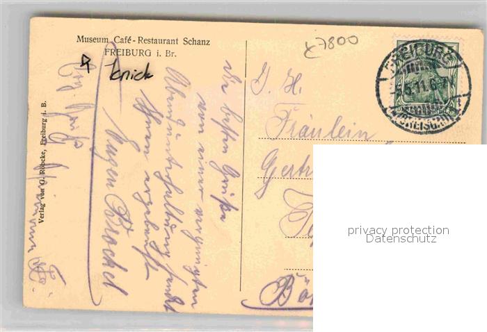 42806474 alte Postkarte Freiburg Breisgau Museum Cafe Restaurant Schanz postalisch gelaufen Erhaltung siehe scans [KathaD81] KatCode: 11110008311000
