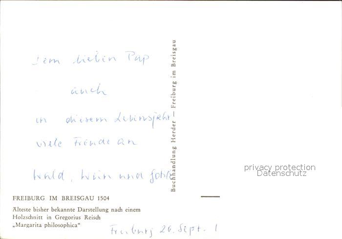71831999 Freiburg Breisgau nach einem Holzschnitt Gregorius Reisch Margarita philosophica postalisch nicht gelaufen Erhaltung siehe scans KatCode: 11110008311000