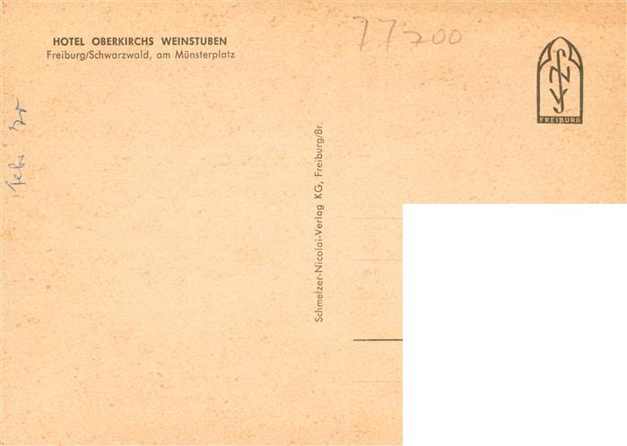 73897800 Freiburg Breisgau Oberkirchs Weinstuben am Muensterplatz postalisch nicht gelaufen Erhaltung siehe scans [WerneD78] KatCode: 11110008311000