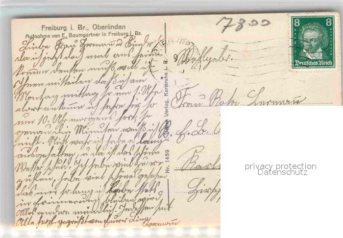 42808125 alte Postkarte Freiburg Breisgau Oberlinden postalisch gelaufen Erhaltung siehe scans [AndreD76] KatCode: 11110008311000