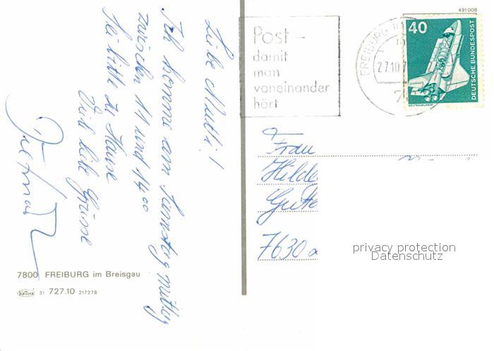 72885521 alte Postkarte Freiburg Breisgau Oberlinden Muenster Stadtpanorama Schwabentor Universitaet Muensterplatz Kaufhaus postalisch gelaufen Erhaltung siehe scans [FriedD77] KatCode: 11110008311000