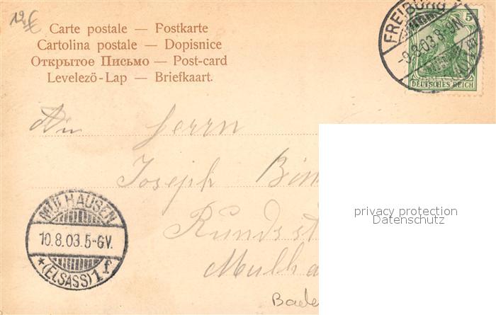 43510586 alte Postkarte Freiburg Breisgau Oberlinden Strassenbahn Blick zum Muenster postalisch gelaufen Erhaltung siehe scans [FriedD77] KatCode: 11110008311000