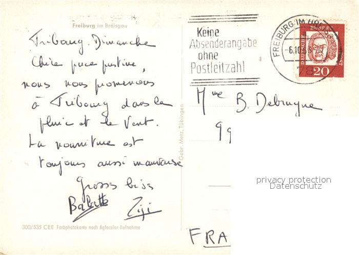 73563357 alte Postkarte Freiburg Breisgau Panorama postalisch gelaufen Erhaltung siehe scans [WerneD78] KatCode: 11110008311000