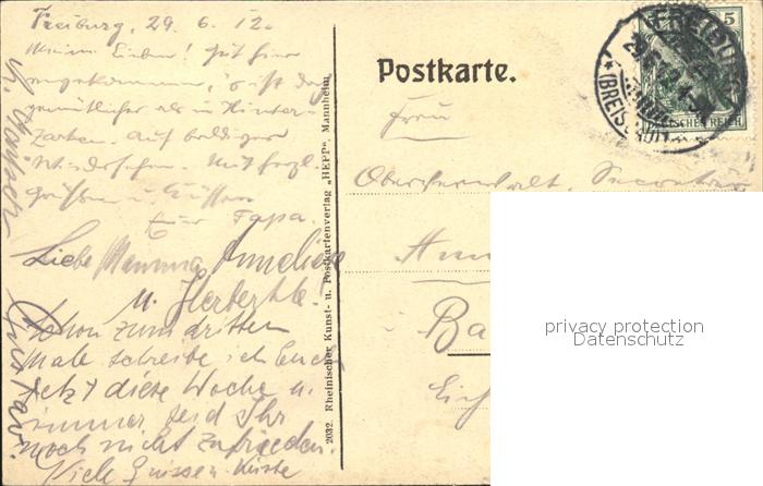71838560 alte Postkarte Freiburg Breisgau Panorama Blick vom Loretto Berg Gasthaus postalisch gelaufen Erhaltung siehe scans KatCode: 11110008311000