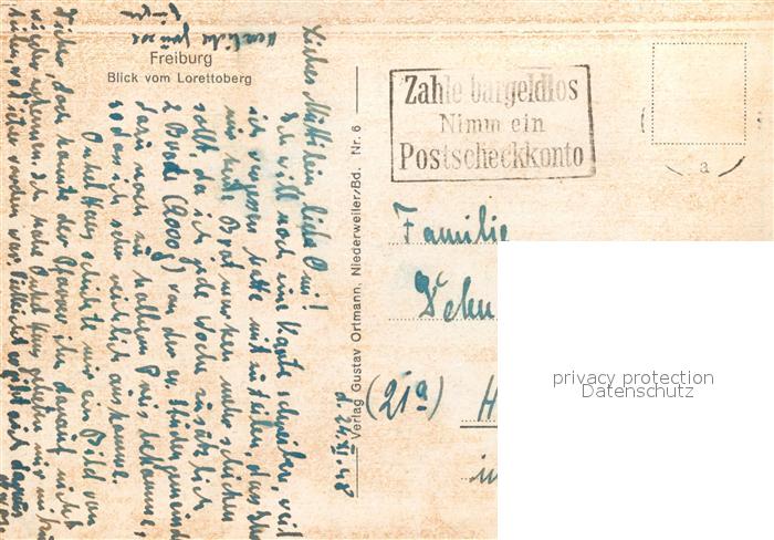 72945788 alte Postkarte Freiburg Breisgau Panorama Blick vom Lorettoberg Restaurant Terrasse postalisch gelaufen Erhaltung siehe scans [FriedD77] KatCode: 11110008311000