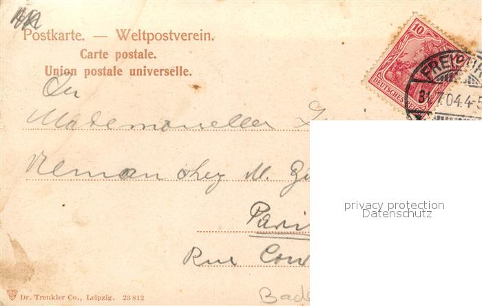 43510489 alte Postkarte Freiburg Breisgau Partie an der Dreisam postalisch gelaufen Erhaltung siehe scans [FriedD77] KatCode: 11110008311000