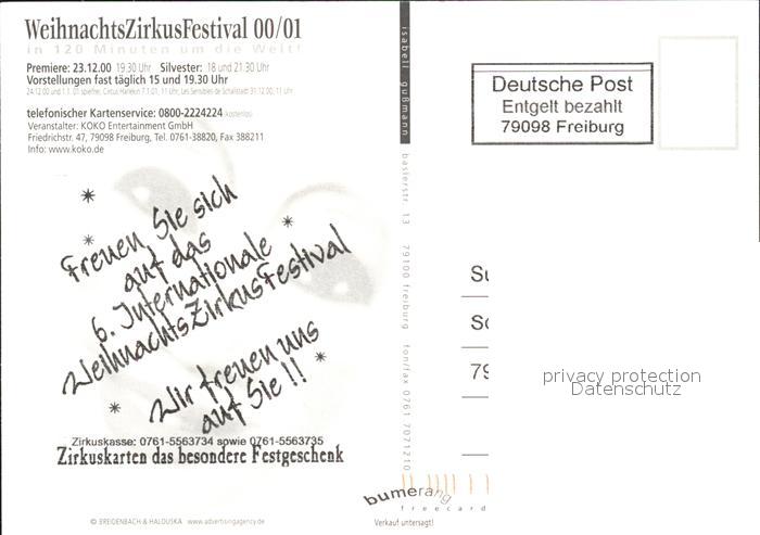 71913330 alte Postkarte Freiburg Breisgau Plakat Weihnachts Zirkus Festival postalisch gelaufen Erhaltung siehe scans KatCode: 11110008311000