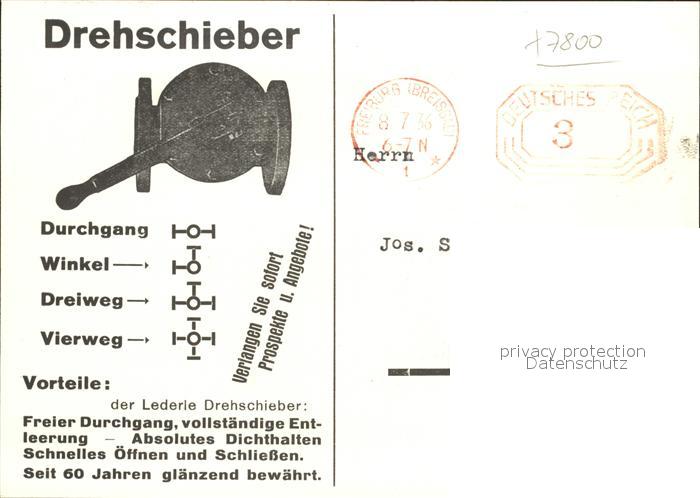 32036384 alte Postkarte Freiburg Breisgau Pumpenfabrik Lederle postalisch gelaufen Erhaltung siehe scans KatCode: 11110008311000
