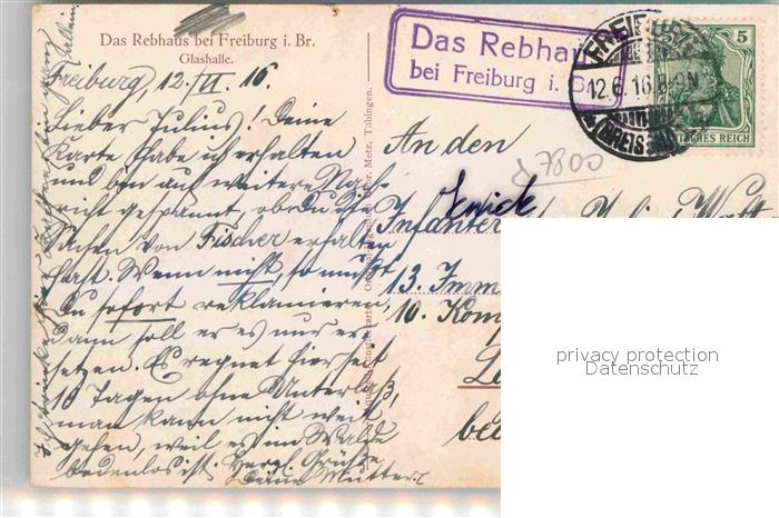 42661827 alte Postkarte Freiburg Breisgau Rebhaus Glashalle postalisch gelaufen Erhaltung siehe scans [KathaD79] KatCode: 11110008311000