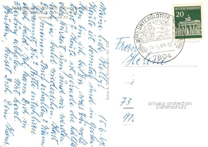 73737407 alte Postkarte Freiburg Breisgau Sanatorium Glotterbad Aussenansicht postalisch gelaufen Erhaltung siehe scans [LiesaD40] KatCode: 11110008311000