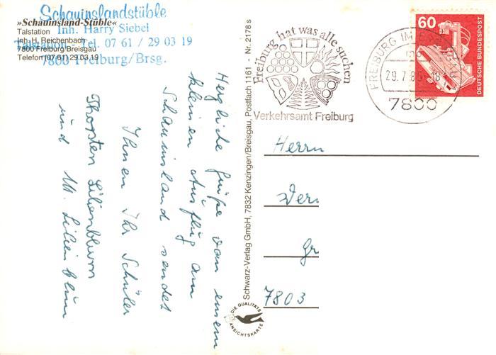 73878804 alte Postkarte Freiburg Breisgau Schauinsland Stueble Gastraeume Schauinslandbahn postalisch gelaufen Erhaltung siehe scans [WerneD78] KatCode: 11110008311000