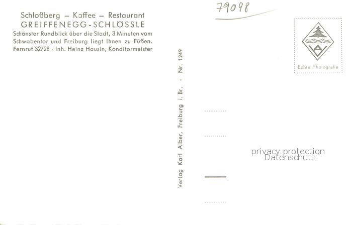 73762465 Freiburg Breisgau Schlossberg-Kaffee-Restaurant Greiffenegg-Schloessle postalisch nicht gelaufen Erhaltung siehe scans [LiesaD40] KatCode: 11110008311000