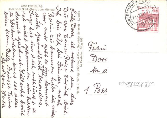 72367777 alte Postkarte Freiburg Breisgau Schlossberg Muenster postalisch gelaufen Erhaltung siehe scans KatCode: 11110008311000