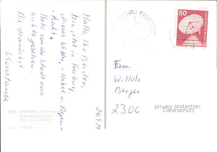 71936294 alte Postkarte Freiburg Breisgau Schlossbergseilbahn Dattler postalisch gelaufen Erhaltung siehe scans KatCode: 11110008311000