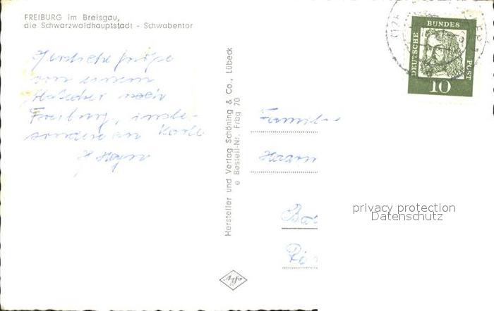 72194652 alte Postkarte Freiburg Breisgau Schwabentor postalisch gelaufen Erhaltung siehe scans KatCode: 11110008311000