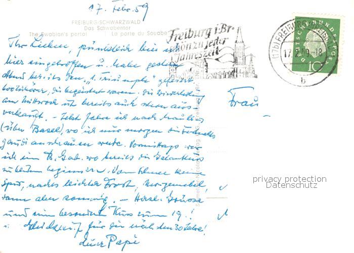73297726 alte Postkarte Freiburg Breisgau Schwabentor postalisch gelaufen Erhaltung siehe scans [PaolaD17] KatCode: 11110008311000