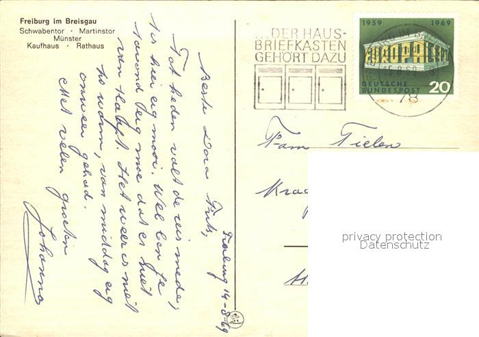 72377561 alte Postkarte Freiburg Breisgau Schwabentor Martinstor Muenster Rathaus Kaufhaus postalisch gelaufen Erhaltung siehe scans KatCode: 11110008311000