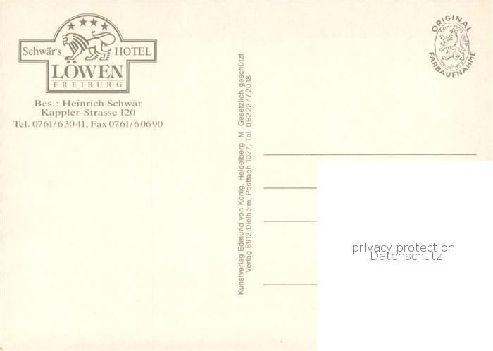73778969 Freiburg Breisgau Schwaers Hotel Loewen postalisch nicht gelaufen Erhaltung siehe scans [WerneD78] KatCode: 11110008311000