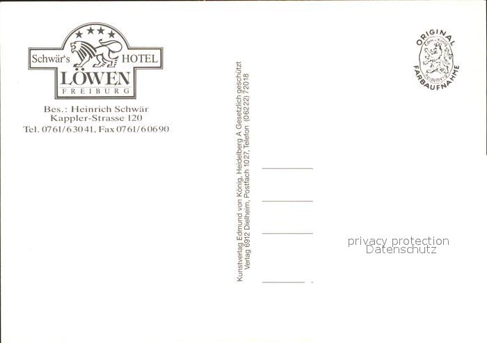 71832067 Freiburg Breisgau Schwaer’s Hotel Loewen postalisch nicht gelaufen Erhaltung siehe scans KatCode: 11110008311000