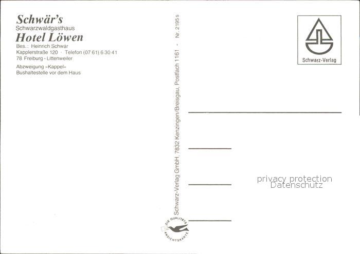 71832065 Freiburg Breisgau Schwaer’s Schwarzwaldgasthaus Hotel Loewen postalisch nicht gelaufen Erhaltung siehe scans KatCode: 11110008311000