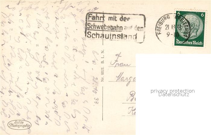 43347581 alte Postkarte Freiburg Breisgau Schwebebahn Schauinsland postalisch gelaufen Erhaltung siehe scans [KathaD81] KatCode: 11110008311000