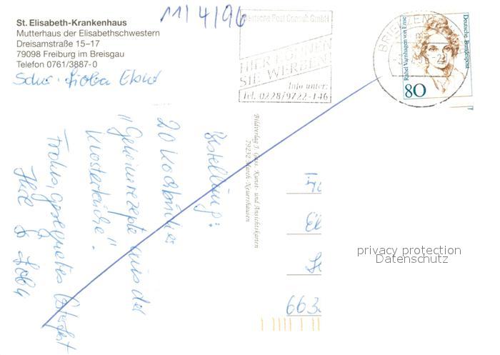 73080496 alte Postkarte Freiburg Breisgau St Elisabeth Krankenhaus postalisch gelaufen Erhaltung siehe scans [FriedD77] KatCode: 11110008311000