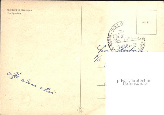 72581778 alte Postkarte Freiburg Breisgau Stadtgarten postalisch gelaufen Erhaltung siehe scans [LiesaD40] KatCode: 11110008311000