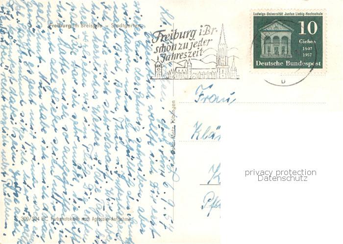 73778970 alte Postkarte Freiburg Breisgau Stadtgarten mit Muenster postalisch gelaufen Erhaltung siehe scans [WerneD78] KatCode: 11110008311000