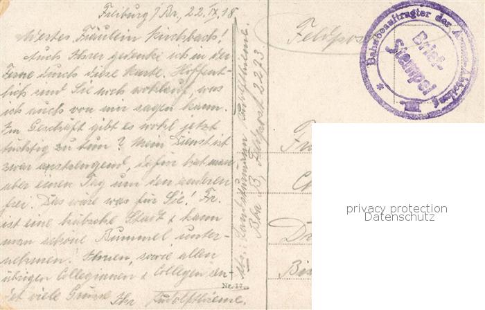 73778046 alte Postkarte Freiburg Breisgau Stadtgarten postalisch gelaufen Feldpost – Stempel Erhaltung siehe scans [WerneD78] KatCode: 11110008311000