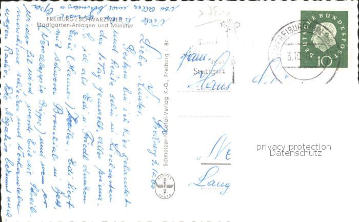 71911203 alte Postkarte Freiburg Breisgau Stadtgartenanlage mit Muenster postalisch gelaufen Erhaltung siehe scans KatCode: 11110008311000