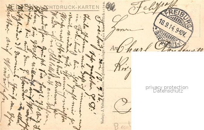 43510580 alte Postkarte Freiburg Breisgau Stadtpanorama mit Muenster vom Schlossberg aus gesehen postalisch gelaufen Feldpostkarte Erhaltung siehe scans [FriedD77] KatCode: 11110008311000