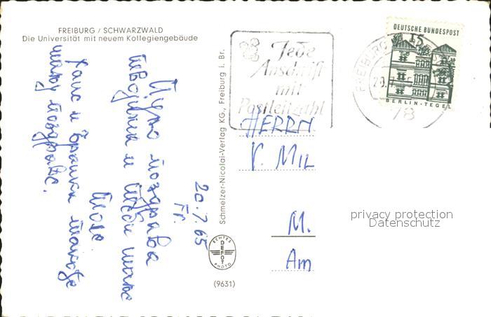 72194712 alte Postkarte Freiburg Breisgau Universitaet mit neuem Kollegiengebaeude postalisch gelaufen Erhaltung siehe scans KatCode: 11110008311000