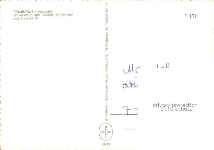 71832204 Freiburg Breisgau Universitaets-Hals-Nasen-Ohrenklinik postalisch nicht gelaufen Erhaltung siehe scans KatCode: 11110008311000