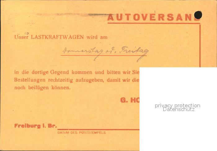 71913462 Freiburg Breisgau Versandkarte der Fa Hoffmann postalisch nicht gelaufen Erhaltung siehe scans KatCode: 11110008311000