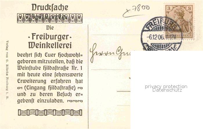 42880444 alte Postkarte Freiburg Breisgau Weinstube Weinkellerei Gmelin postalisch gelaufen Erhaltung siehe scans [KathaD81] KatCode: 11110008311000