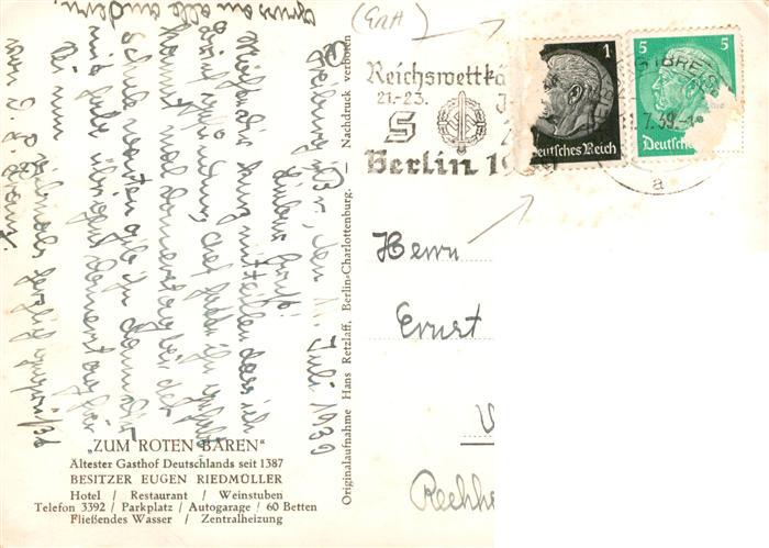 73944090 alte Postkarte Freiburg Breisgau Weinstube Zum roten Baeren postalisch gelaufen Erhaltung siehe scans [WerneD78] KatCode: 11110008311000