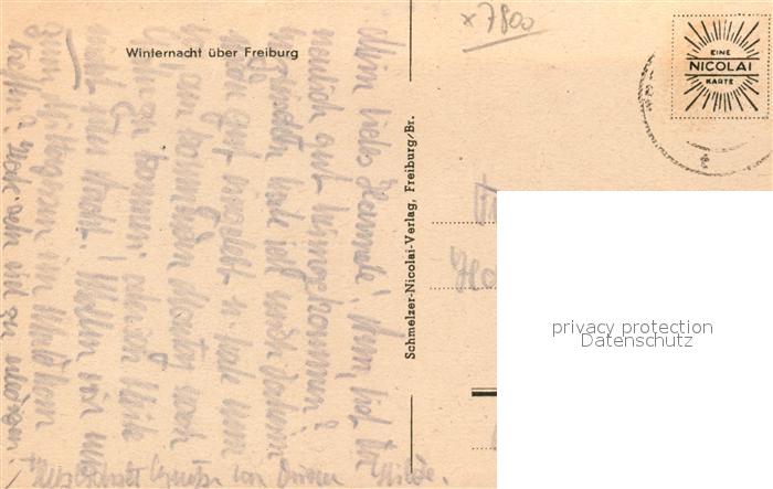 43302606 alte Postkarte Freiburg Breisgau Winternacht mit Muenster Federzeichnung postalisch gelaufen Erhaltung siehe scans [WerneD78] KatCode: 11110008311000